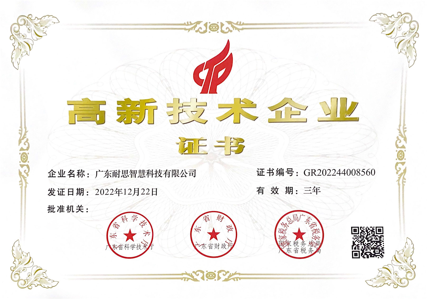廣東耐思智慧科技有限公司簡稱“耐思智慧”,國家高新技術企業,廣東省“專精特新”企業。