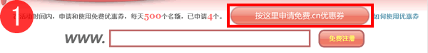 1、點擊“申請免費.cn優惠券“得到優惠券號碼。