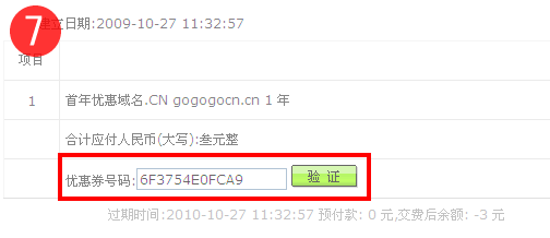 7、輸入“優惠券號碼”并點擊“驗證