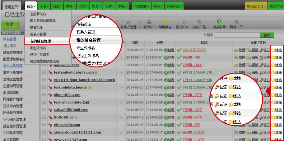 域名繳費開通后,登錄用戶控制中心-域名管理-建站即可登錄建站寶盒免費版。