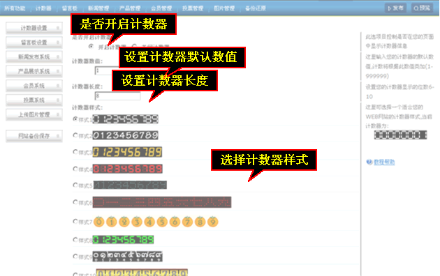 設置是否開啟計數器計數器數值計數器長度選擇計數器樣式,最后點擊右下角“應用更新”完成添加 。