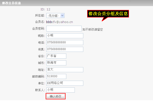這里可以修改“會員分組”及“基本資料”,當(dāng)會員密碼忘記了,也可以在這里“更改會員密碼”。