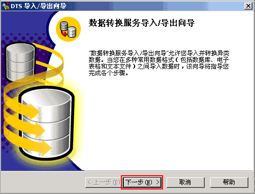 | 2. 進入DTS導入/導出向?qū)Вc擊“下一步”按鈕繼續(xù) | |