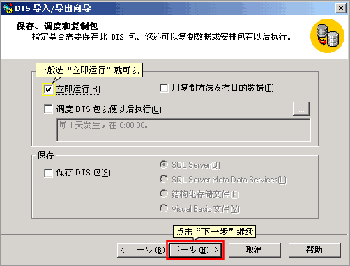 | 7. 設定調(diào)度方式,一般選“立即運行”就可以,然后點“下一步”繼續(xù) | |