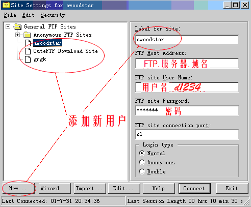 1、 用戶名(User Name):FTP用戶登錄名。例如d1234。